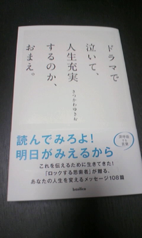 「ドラマで泣いて、人生充実するのか、おまえ。」(バジリコ社) という本を買った。 またランディさんのブログで見つけたもの。 でも、もしブログで紹介されてなくても買ったと思う。 タイトルのセンスが絶妙だと思った。 この作品は108の詩集。 お気に入りのものを挙げてみる。 誰にも言えないものがあるとしたら、 それはむしろあなたの宝物として扱え。 自分の居場所とは、自分が帰れる場所である。 プレゼントが嬉しいのは、 会っていない時に自分を意識してくれたことが嬉しいのだ。 1年に1度くらいはちゃぶだいをひっくり返せ! 助けたくても助けてあげられない、 ということをお互いの中に確かめ合うことが、 本当の信頼関係である。 コミュニケーションに絶望した人だけが、 コミュニケーションを渇望する。 渡すべきは心であって言葉ではない。 言葉は心の包装紙。 包装紙だけもらって喜ぶ人はいない。 楽しい生き方とは、 楽しいことをして暮らすことではない。 楽しくないことはしない、という生き方である。 私たちは「起きたこと」を何も知らない。 誰かが「知らせたいこと」だけを知ることができる。 たった一人で語れる言葉を持て。 他にもたくさん心に響く言葉があった。 自分の想いを誰かに伝えることは本当に難しい。 みんなが使うありふれた言葉を使って、 相手の望む言葉を用意して、 自分の中にある漠然とした想いは無視して生きていく。 そんな風に生きていけたら こんなに悩まないんだろうな、と思う。 だけど、僕はやっぱり僕の言葉で伝えようと思うし、 矛盾してる想いも言葉にならない漠然とした想いも抱えながら 生きていくんだと思う。 きっと僕はコミュニケーションに絶望している。 僕の考えてることなんてたいていの人にはわからないんだと思ってる。 そのせいで誤解されても非難されても仕方ないとも思ってる。 だけどやっぱりわかってほしいと思うし、 僕はコミュニケーションを渇望しているんだと思う。 PR 2008/03/22(Sat) 18:19:24